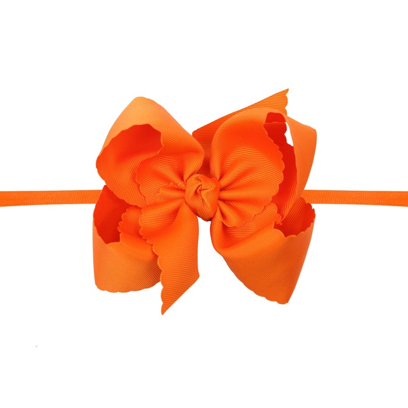 1/4″ NYLON PANTYHOSE HEADBAND W/ SCALLOPED EDGE BOW: Orange / 5.5″ Huge