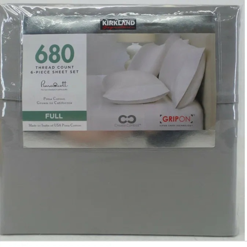 100% Cotton 680 Thread Count Sheet Set – Gray – Full Size