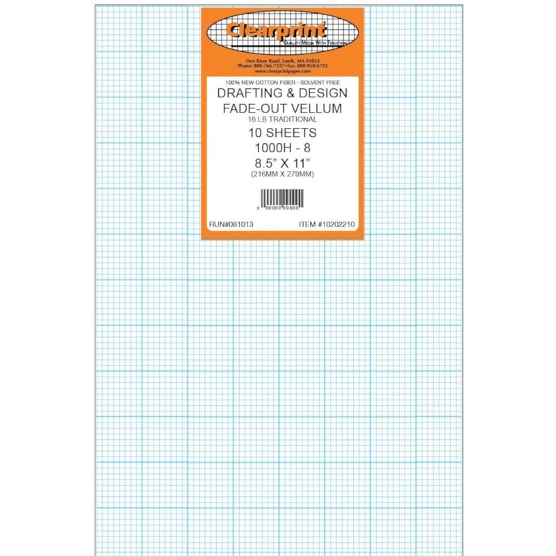 1000H Clearprint 16 lb. Vellum Single Sheets, 8×8 Grid, 8.5 x 11