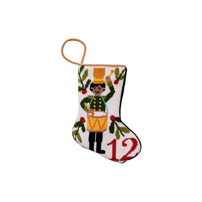 Senda true love the12 Drummers Drumming Mini Stocking, and it will become a time-honored holidaydecoration.Itsperfectly sized for hanging on the tree and is meant to be the last gift that one opens on Christmas morningproof that the best presents come in small packages.Athoughtfulpresentfor someone who has everything,this Bauble Stocking is as versatile as it is charming.Hand-stitched in Haiti for fair trade, this needlepoint stocking brings good tidings to your home while providing meaningful jobs to women in the Caribbean. These ethically made keepsakes spread joy to all:5% profit of each sale goes to the Joan Rose Foundation in Jacmel, Haiti.