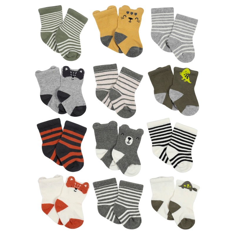 12-Pack Baby Boys Dino, Lion, & Camping Wiggle-Proof Socks