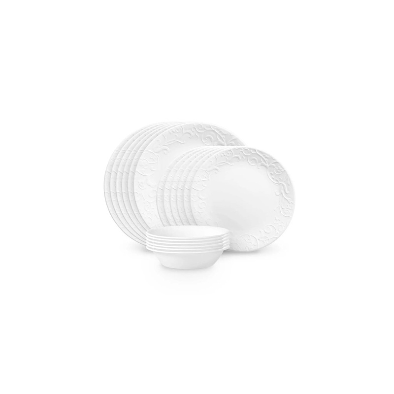 With beautiful floral scrolls, this dinnerware lends a subtle grace note to every place at the table. The embossed pattern gives each piece a delicate texture, and the tone-on-tone white design is the perfect backdrop for any food and looks great on any ta