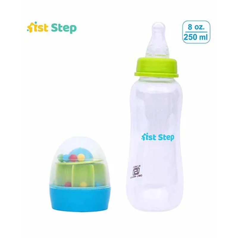 Made from 100% polypropylene materialBPA freeThe product is European CertifiedThe bottle features ultra clear bodyErgonomically designed for easy gripAlso the bottle has rattle hood which keeps baby entertainedSpecificationsBrand - 1st StepType - Feeding B