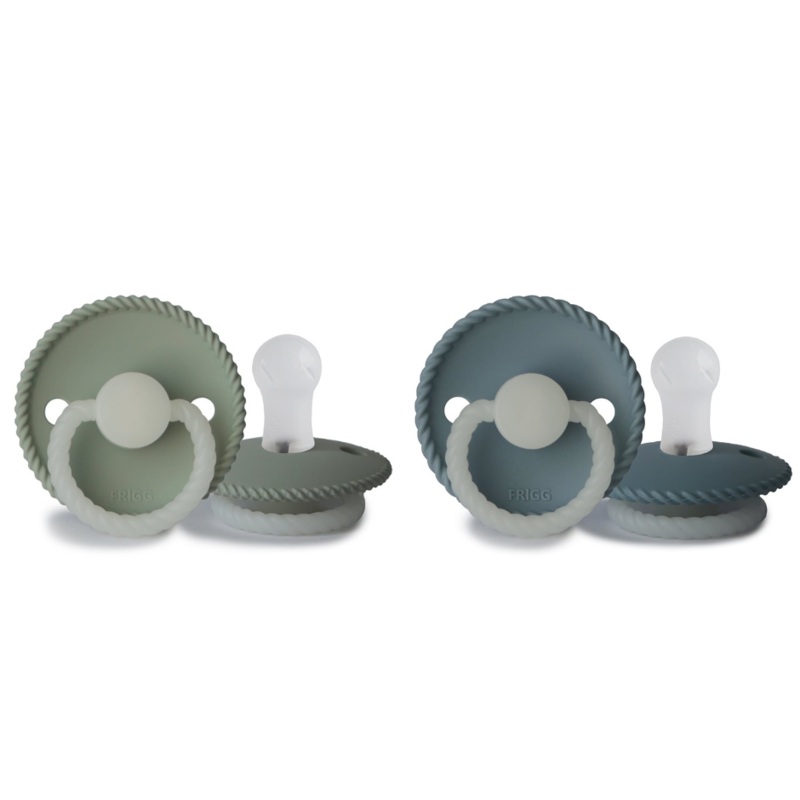 FRIGG Night pacifier with a glow-in-the-dark function. The handle and knob will glow in the dark and solve the challenge of finding and placing your babys pacifier in the middle of the night.