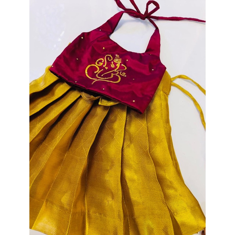 NY763870142025-Ganesh chathurthi Collections – Maroon Top & Gold Bottom Pattu Pavada