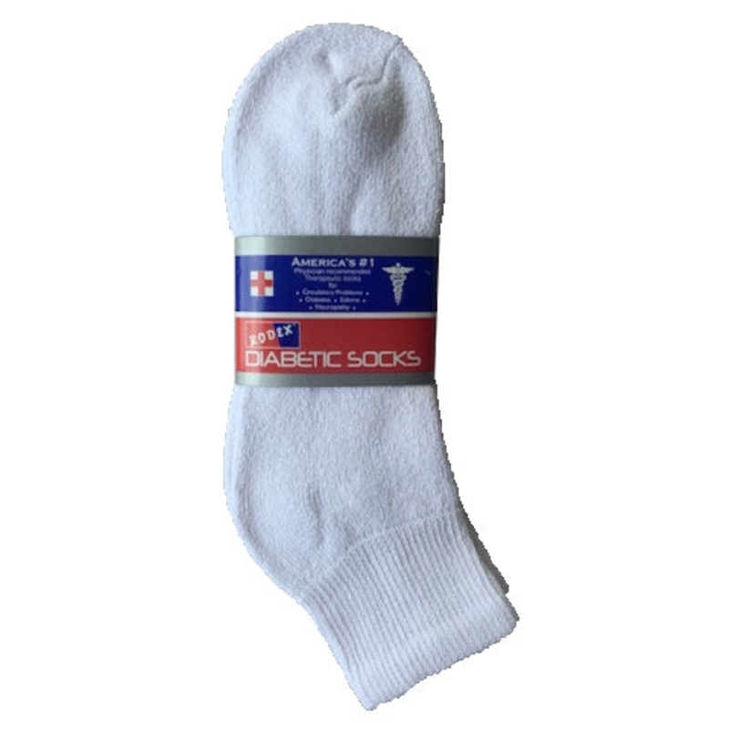 These therapeutic Diabetic Quarter Socks are perfect for those who have circulatory problems, diabetes, edema, and neuropathy. They are made of soft and breathable fabric for all-day comfort.Fabric: 90% cotton, 10% nylon3 pairs per packSock size 9-11 (shoe
