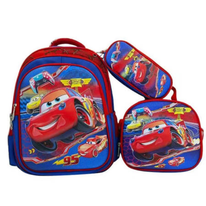 3 Piece Set Schoolbag 42cm Schoolbag- Lunch Bag & Pencil Case- Cars