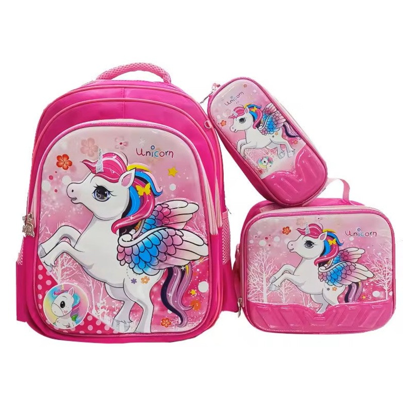3 Piece Set Schoolbag 42cm Schoolbag- Lunch Bag & Pencil Case- Unicorn