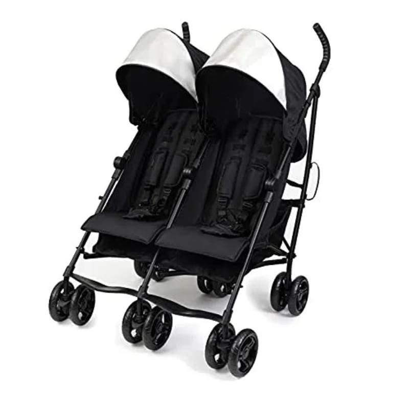 Double your adventures without doubling your load with the Summer by Ingenuity 3Dlite Double Convenience Stroller. Weighing under 22 pounds, this lightweight stroller from a Top Manufacturer of Umbrella Strollers* features an easy-to-fold compact frame that makes it easy to stow and go with a convenient carry handle. Little ones will feel comfortable and secure thanks to individual full-size padded seats with multi-position recline (maximum weight for each seat: 50 pounds), 5-point safety harnesses, and pop-out sun visors. Parents will enjoy a cup holder plus tons of storage, with two storage pouches as well as two extra-large storage baskets. Anti-shock front wheels provide a smooth ride while lockable rear wheels give you a sense of security while you’re out and about. Whether you’re taking a spin around the neighborhood or strolling through the airport, the 3Dlite is the ideal double stroller for travel or every day.