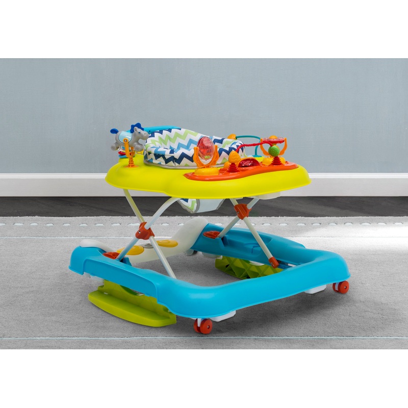 The Little Folks 4-in-1 Discover & Play Musical Walker by Delta Children will have little ones moving their feet to the beat! Baby will activate different sounds with their feet as they play–the musical foot petal helps develop coordination and gross motor skills while also promoting music appreciation. An adaptative walker that helps babies balance, stand and walk, it features four distinct modes to accommodate your growing child. The 360-Degree Activity Center Mode allows baby to interact with all the toys, sounds, colors, shapes and animals on the walker by spinning all the way around in the comfy seat. The Rocker Mode sways gently back and forth while still incorporating all the toys from the Activity Center. Walker Mode encourages baby to simulate walking movements, and the Push Behind Mode provides balance for new walkers with a sturdy handle on the back. A great toy for baby, the 4-in-1 Discover & Play Musical Walker will drum up some fun every time you use it!