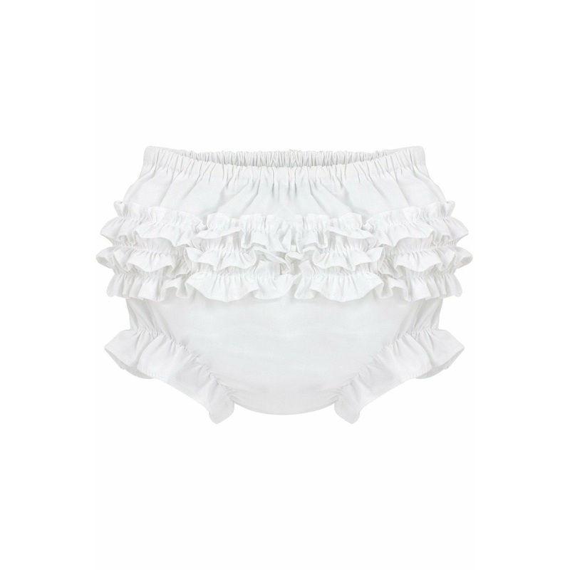40019-Baby Girls Ruffle Diaper Covers – White Bloomers 3M White