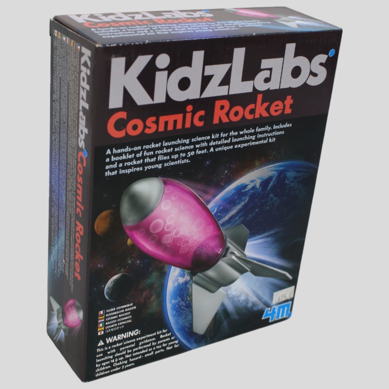 Make up your rocket and decorate it with the included stickers.Simply add baking powder and vinegar, then watch it shoot up in the sky about 10 metres high.This kit is recommended for children over 14 years old and is to be used outside only.17cm x 22cm x