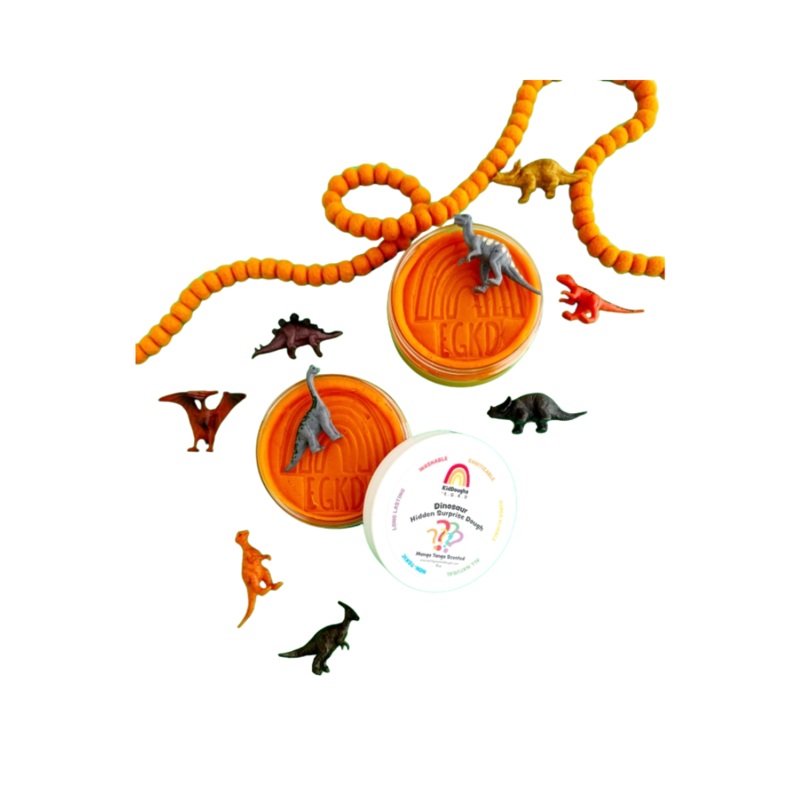 - Includes: 4 oz Orange (Mango Tango) KidDough, Hidden Surprise Dinosaur Figurine