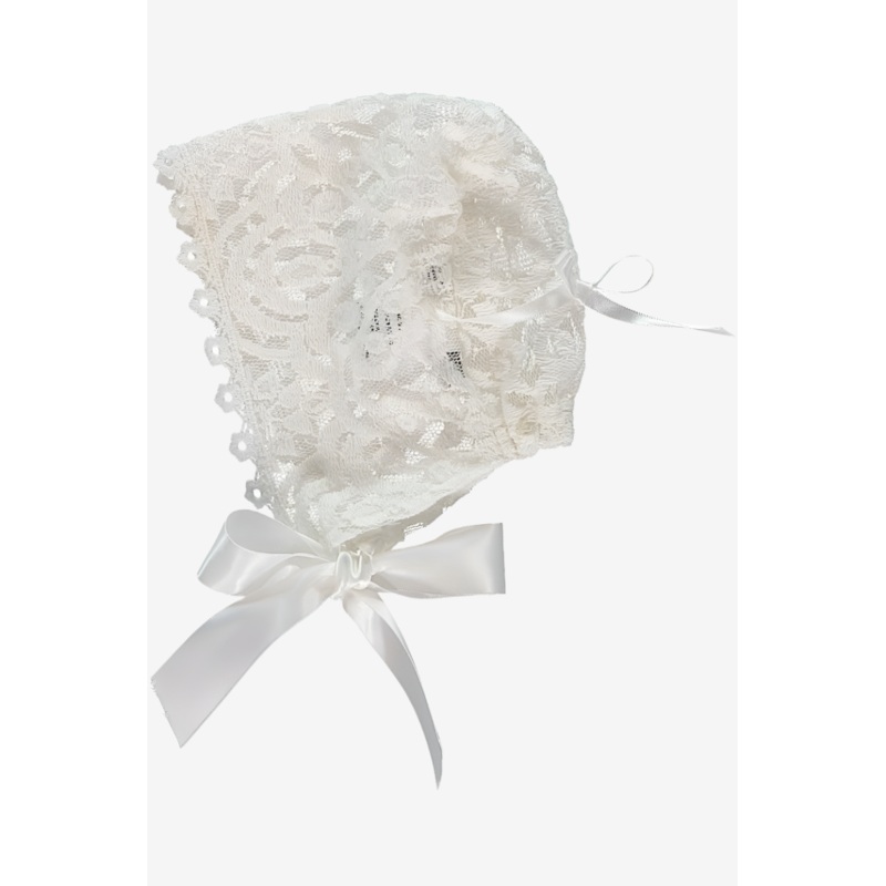 74150-Elegant Lace Baby Girl Baptism Bonnet 3M