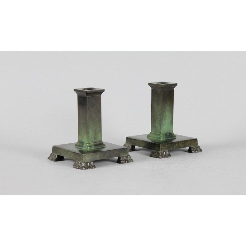 S97432329A Pair of GAB Swedish Modern Bronze Patinated Candlesticks.
