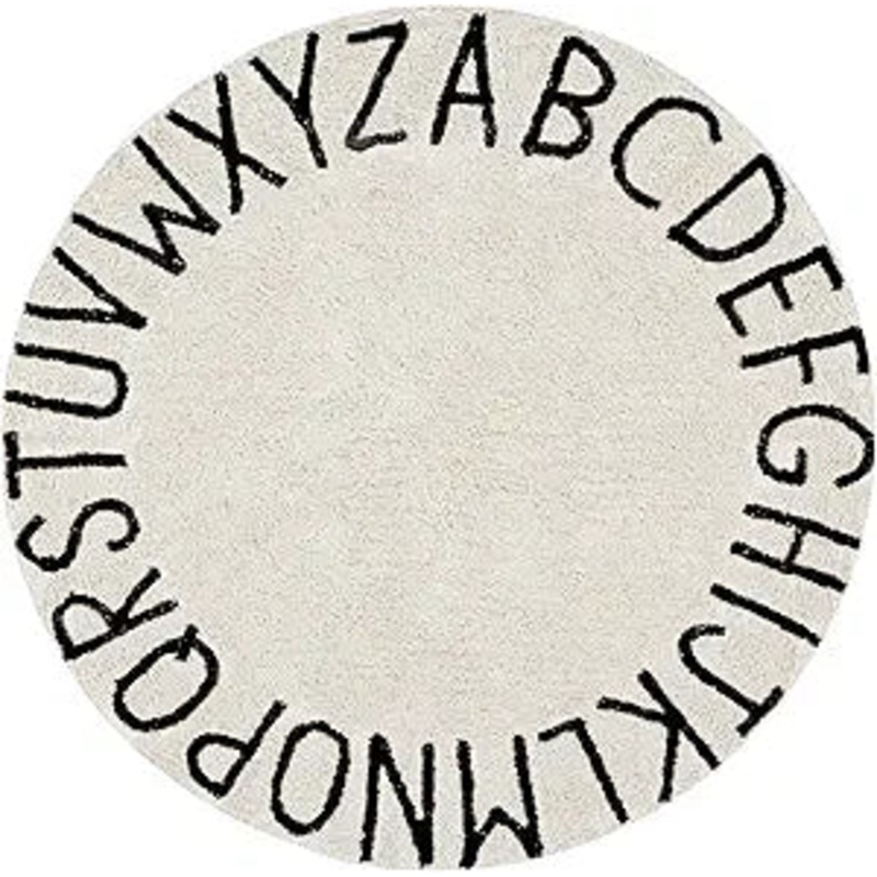The ABC Natural Round Rug by Lorena Canals is perfect for kids to play and learn their ABCs! This all-time favorite design never goes out of style. Little ones can trace the letters with their fingers to learn the alphabet. Its neutral colorway and adaptab
