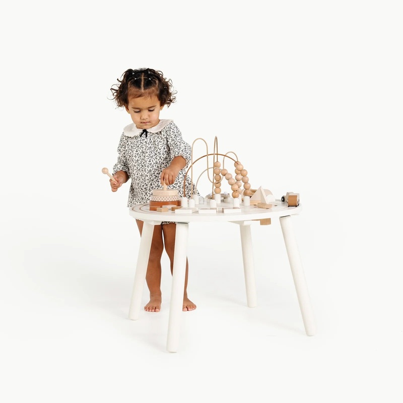 A playful, sturdy standing place for little hands and minds to tinker.Standing place supporting developmental play.Great for curious kids mastering fine and gross motor skills.Natural tones for peaceful play.