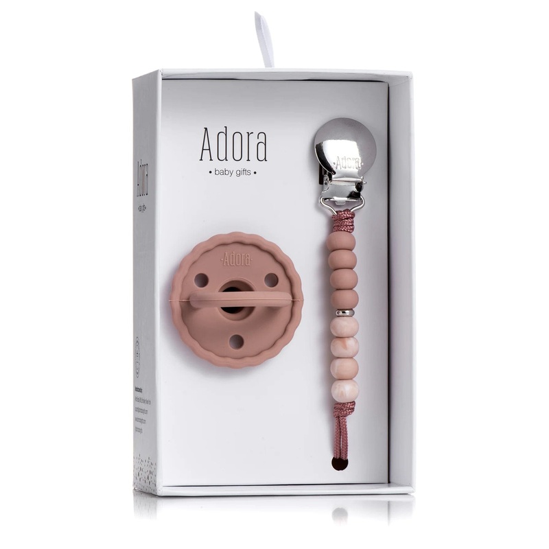 This cute gift set includes a gorgeous pacifier from Adora with a matching paci clip.