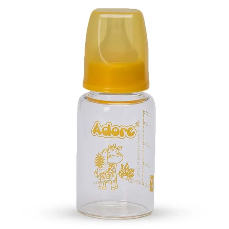 BPA Free Premium Grade Borosilicate Glass Ergonomically Designed Multipurpose Anti- Colic Teat BIS Approved, Safe for Babies Bottle is microwave and sterilizer safe Spill Proof Design Stage1 – Milk Storage Bottle Stage2 – Feeding BottleSpecificationsBrand – AdoreType – Glass Feeding Bottle Age – 0 Months+Bottle material – GlassNipple material – SiliconeBPA free – YesLeak proof – YesAnti-colic – YesProduct DescriptionAdore Glaze Junior 2 in1 Glass Feeding Bottles are meticulously crafted to the highest safety standards. These Glass Feeding Bottles are manufactured from borosilicate glass that can with temperatures of up to around 170C and are more durable and harder than regular glass. Borosilicate glass is completely non-toxic, and as a parent, you never have to worry about chemicals leaching into your baby’s food and drinks. Stage 1 Insert the Sealing disc to use this as a Milk Storage Bottle.Stage 2 Replace the Sealing disc with the anti-colic silicone teat to use as a Feeding Bottle.Items included in the package 1 Glass Feeding Bottle
