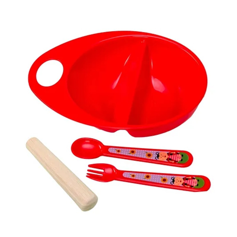 Adore Supper Hero Feeding Bowl with Spoon, Fork & Wooden Masher- Red