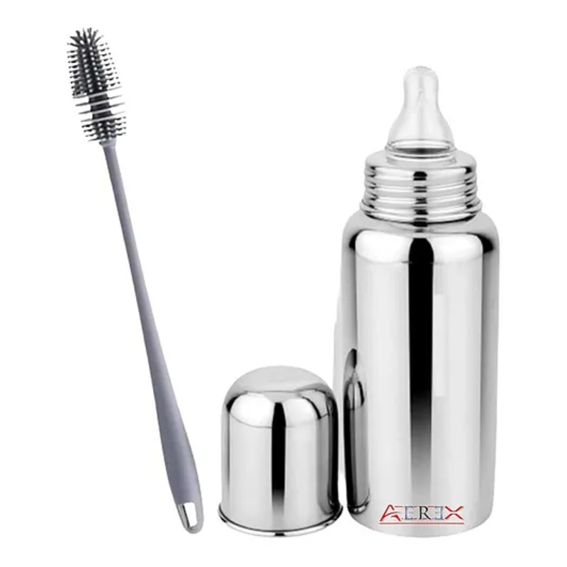 Fabric ContentStainless SteelSpecifications-Brand- AEREXType- Feeding BottleAge- 1 Months to 1 YearsItems included in the Package Milk Feeding Bottle with Cleaning BrushSize – 5x5x15cmCapacity – 240ML