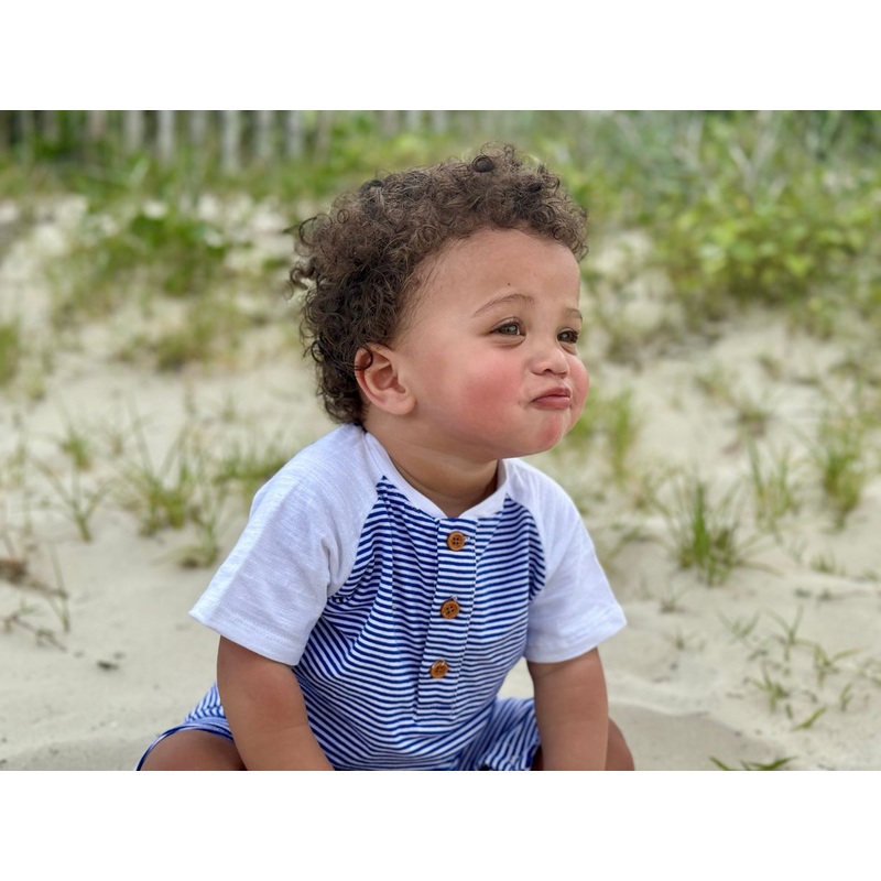 Afloat Raglan Romper- Royal/ White Stripe(FINAL SALE)