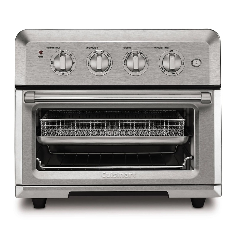 This unique kitchen workhorse, the Cuisinart Air Fryer Toaster Oven, is a premium full-size toaster oven with a built-in Air Fryer, which not only helps you do baking, broiling, toasting, and warming up leftovers, it also lets you air fry right inside the oven. Air frying, which uses powerful ultra-hot air, is a healthier way to prepare delicious fried favorites like chicken wings, fritters, fries and more. This versatile kitchen appliance includes accessories such as the oven rack, baking pan/drip tray, and Air Fryer Basket. Bring next-generation cooking to your countertop with this spacious, multi-function Cuisinart Air Fryer Toaster Oven that makes cooking a feast for family and friends or a simple snack for one fun, fast, and easy!