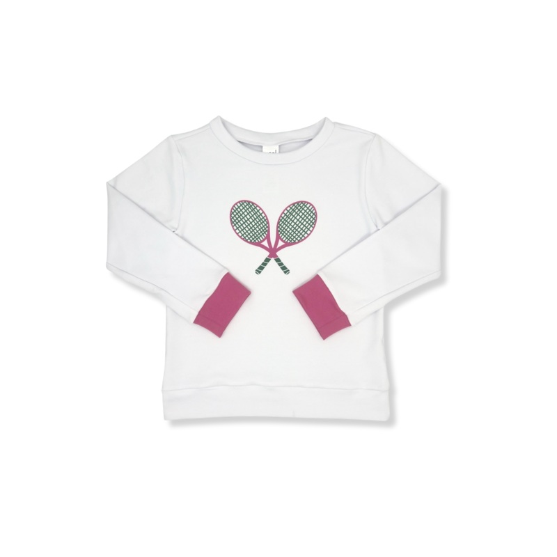 Alex Sweatshirt- Daisy White, TennisOur new Alex Sweatshirt is perfect for the court. This soft and cozy sweatshirt in Daisy White with tennis racquets brings team spirit to a new level. Pair with our skorts or leggings to complete the look.