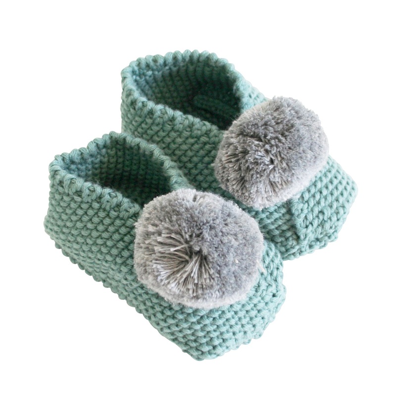 Alimrose Baby Pom Pom Slippers – Sage & Grey