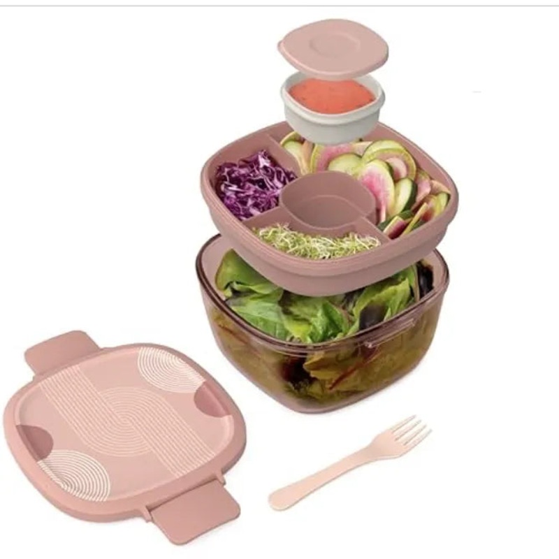 Large, Airtight, & Stackable Bowl: Take healthy salads and other nutritious meals on the go with this spacious, stackable, all-in-one portable salad bowl. With a generous 7.6-cup capacity, it offers plenty of room for meal variety. The airtight lid and secure locking clips seal in freshness, while the compartment tray and sauce container keep toppings separated until youre ready to eat!