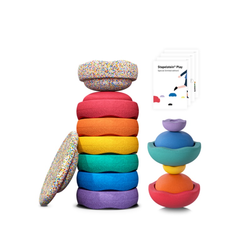 The All In Set brings together everything that makes Stapelstein so special: the beloved Rainbow Set, the vibrant Original super confetti, and the compact Inside Set. As an Memorial Day Special, enjoy afree Board super confetti and an updated version of Digital Playfor endless fun and movement for the whole family.