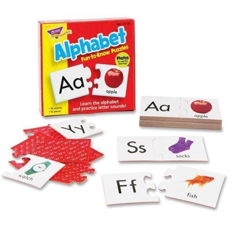 Everyone loves a challenge. Use these Alphabet Fun-to-Know Puzzles to help children build confidence and achieve success. Fun, two-piece puzzles teach children the alphabet and let them practice letter sounds. Only matching pieces fit together. Not only do