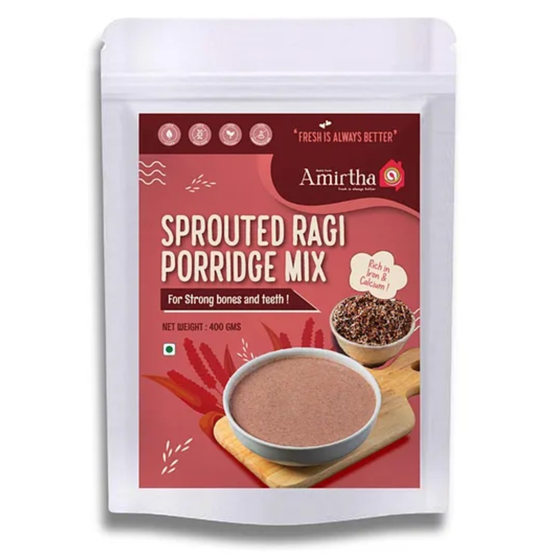 Amirtha Health Foods – Sprouted Ragi Mix – 400g | Rich in Calcium & Iron| Non-Instant mix | Porridge, Puttu, Dosa, Rotis