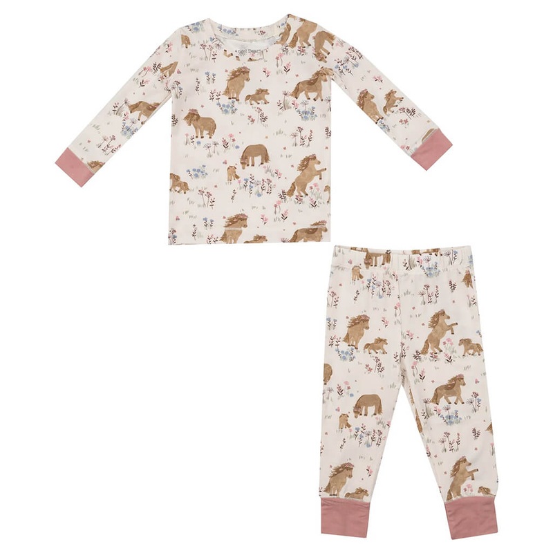 The Angel Dear Long-Sleeve Pajama Set Pretty Ponies is perfect for babies and big kids alike! The smooth and stretchy fabric will keep your little one comfortably cozy!95% viscose from bamboo, 5% spandexMachine Wash Gentle Cycle/ Tumble Dry LowDo not Bleac