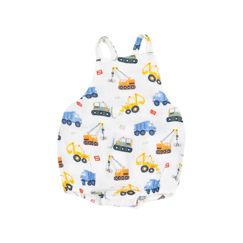 Cool Construction Sunsuit100% Cotton MuslinWash Cold/Dry Low Heat or Hang DryCurated Illustrations designed by and for Angel Dear