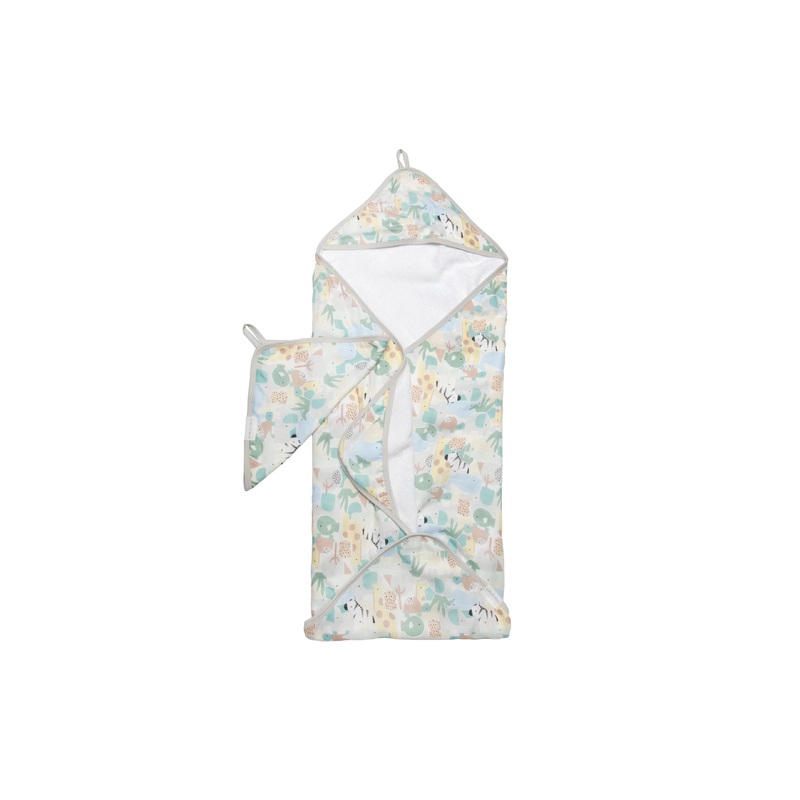 The Animal Puzzle Hooded TowelSetbyLoulou Lollipopis made with an ultra-absorbent and buttery-soft terry cloth backing; these towels are a comfy way to kick off your little ones bedtime routine or use it at the beach or pool to keep their little bodies warm. The generously sized towel keeps heads and hands warm thanks to the hood and pockets, while the matching washcloth is gentle on the babys delicate skin. Manufactured at an OEKO-TEX Standard 100 certified factory, you can feel confident that hooded towels are free of toxic chemicals and always safe for your baby.