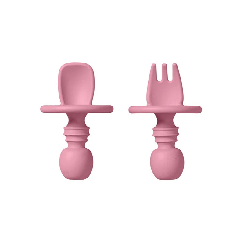 Silicone spoon and fork with ergonomic design Specially designed so they are easy to grip for little hands. It adapts to his needs to catch food the simplest way. Its silicone handle is very soft and provides a firm grip. The curved shovel-shaped design helps to catch food easily, preventing food from falling off. The built-in silicone ring prevents cutlery from causing choking. 100% safe! Kids will gain confidence and enjoy their learning. material with numerous advantages: antibacterial and extremely resistant: it does not deform, as it is very flexible. It withstands extreme temperatures without losing its properties. Its pretty much unbreakable! Made of food silicone, an eco-friendly Dishwasher safe. Non suitable for microwave. Wash with soap and water before first use. Do not use abrasive cleaning products. Do not boil to sterilize. For your childs safety and health, Warning!