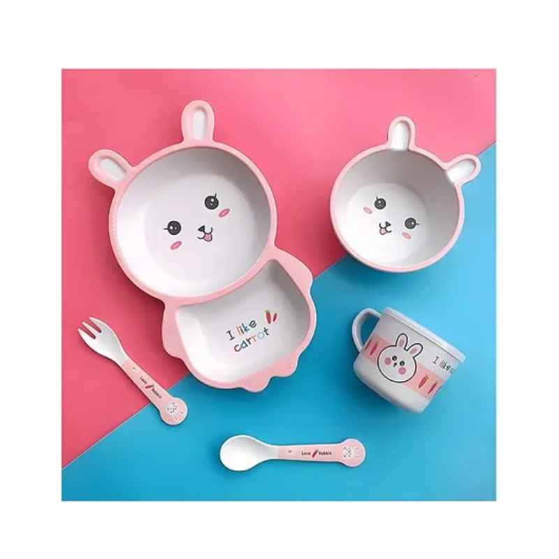 ARCADE TOYS Rabbit Shape Bamboo Multi Piece Feeding Set for Kids(Set of 5) – Multicolour