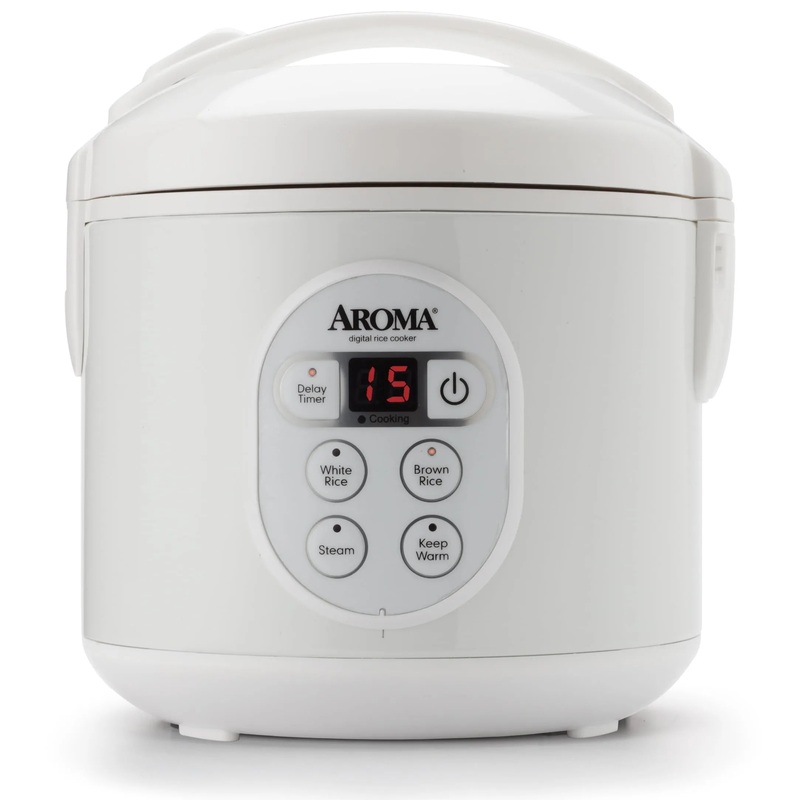 Take the guesswork out of rice preparation with the help of the Aroma 8-Cup (Cooked) / 2Qt. Digital Rice & Grain Multicooker. This model simplifies the entire process in a way that even beginners can understand. It features easy-to-use, programmable digital controls that will enable users to properly cook different types of rice. This sleek and stylish kitchen rice cooker does it all at the touch of a button. No need to monitor your rice over a hot stove, it senses when the rice is perfectly cooked and then automatically switches to the Keep Warm mode. Your rice will be ready to serve for up to 12 hours. The removable inner pot makes serving and cleaning up quick and easy. The attractive white finish with chrome accents makes it look elegant enough to leave on your counter. The Aroma rice cooker comes with a serving spatula and measuring cup.