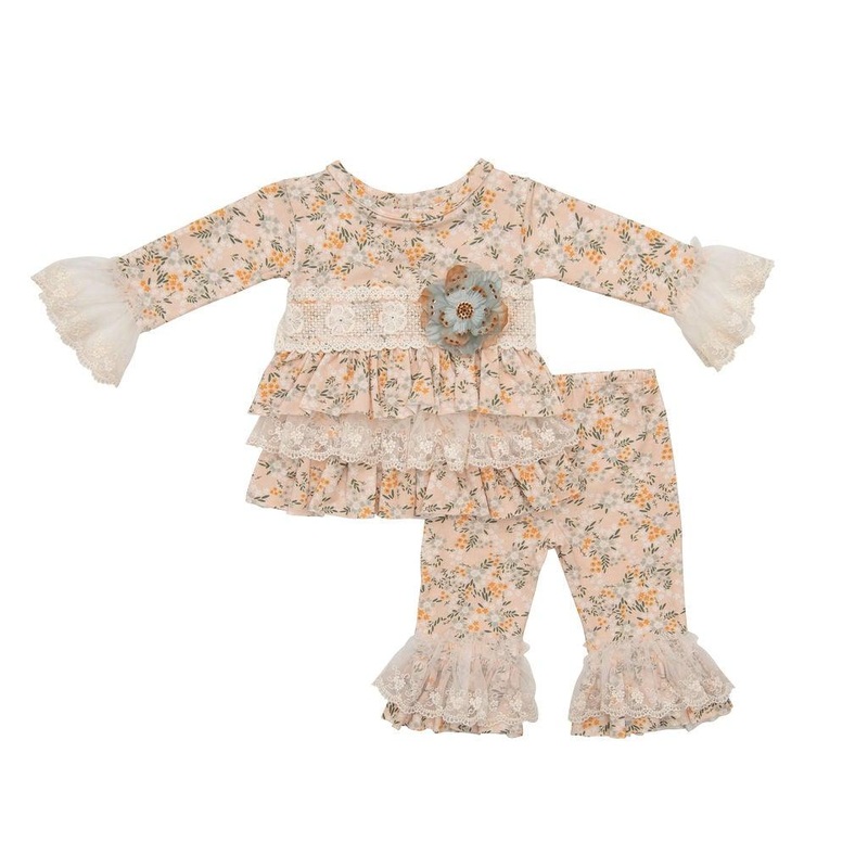 Cute pastel oranges and pretty lace make up this splendid outfit.