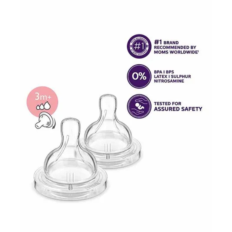 Avent Classic Variable Flow Silicone Teat – Pack of 2
