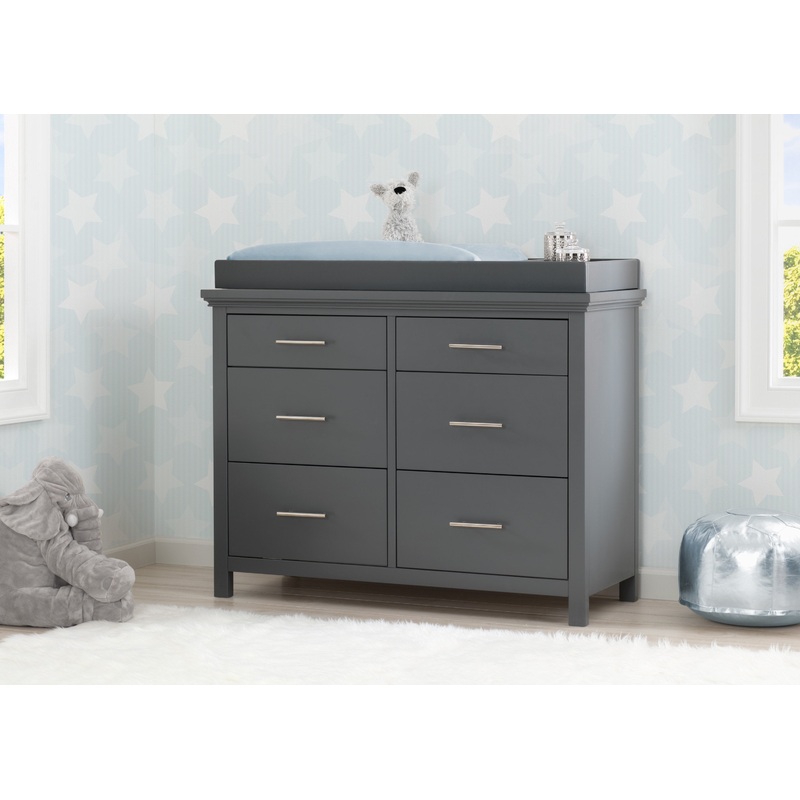 The Avery 6 Drawer Dresser with Changing Top brings order to any bedroomits six large drawers provide plenty of storage space, while the removable changing top creates a convenient changing station with its multiple compartments. Designed to withstand year