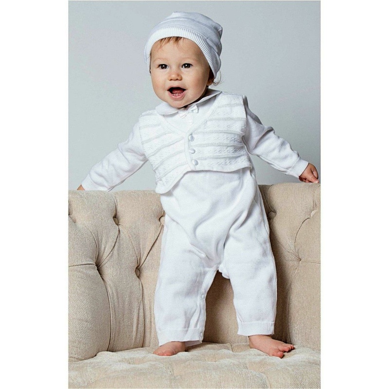 Baby Boy Christening Outfit with attached Vest and Hat Newborn