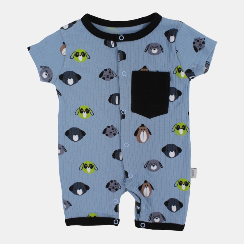 Baby Boys Cotton Romper Light Blue with Dog Faces Design