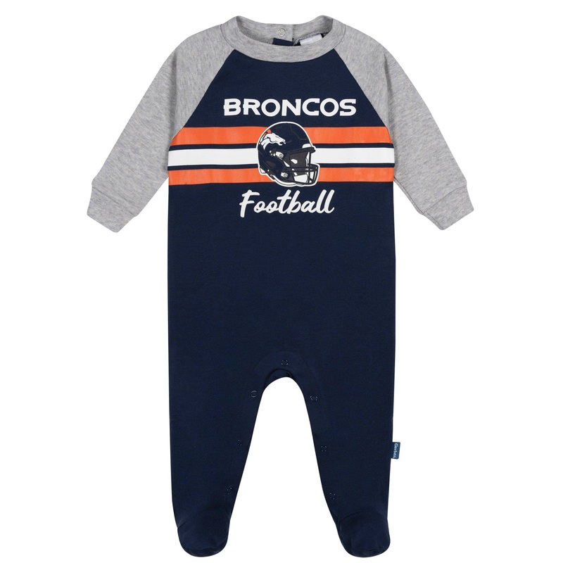 Time for a cozy huddle before bedtime! These sleep 'n play are made from thick, soft interlock fabric to keep your little Bronco warm and snuggly through the night. Flexible ribbing at the wrists and neckline ensures a comfy fit, while leg snaps and two re