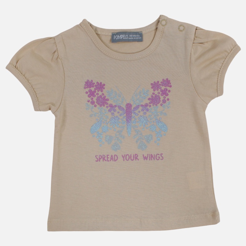 Baby Girls Cotton T-Shirt Beige with Butterfly Design