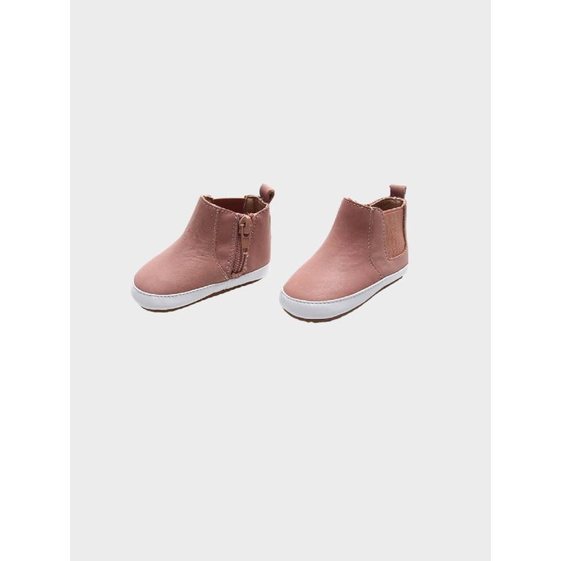 This new footwear collection features baby sizes in these leather boots. Ease of on and off was super important to us in baby footwear, and these are a great option for fall! The zipper on the side allows the shoe to open up easily. Packaging: all footwear