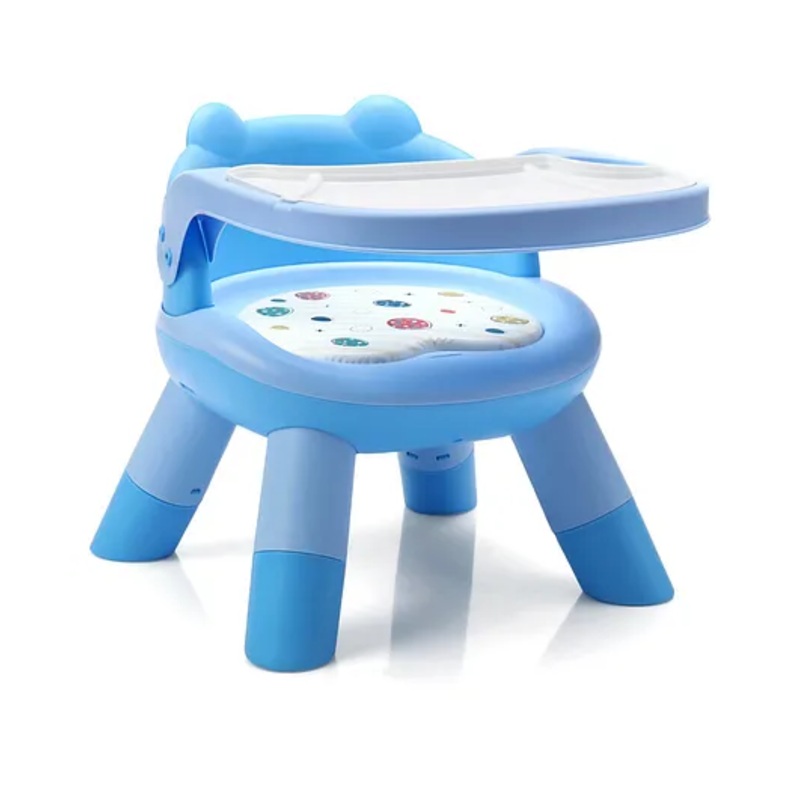 Baby Little Dining Chair With Whistle – Blue| Stable Base| No Sharp Edges| Removable Double Feeding Tray| Safety Harness| Comfortable Backrest