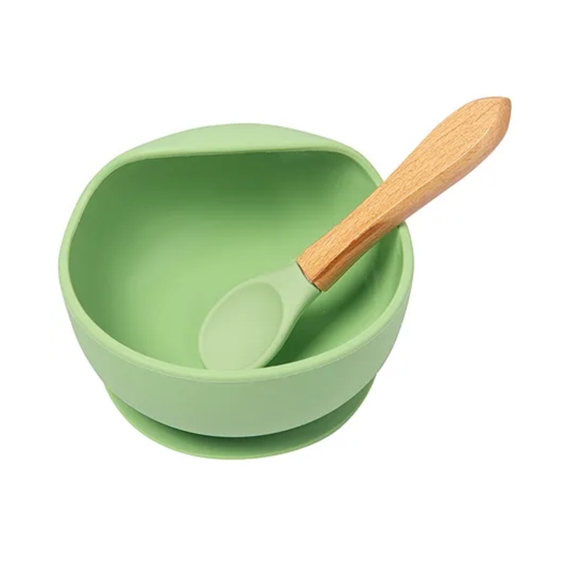 Baby Moo Silicon Bowl And Spoon Dinner Set – Green