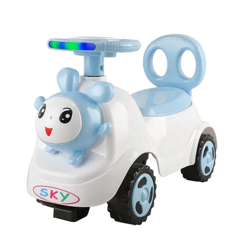 Baby Panda Delux Manual ride on with LED Lights Music & Under Seat Storage Utility Box – Blue